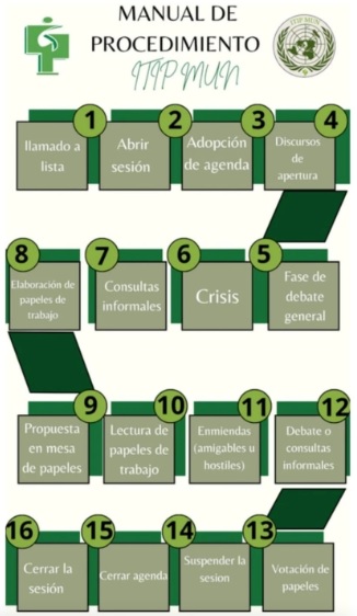 Debates: Siguiendo reglas de diplomacia, se negocian soluciones mediante discursos, alianzas y proyectos de resolución.